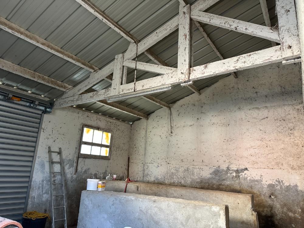 Deux hangars sécurisés avec portes séquentielles + abri attenant.