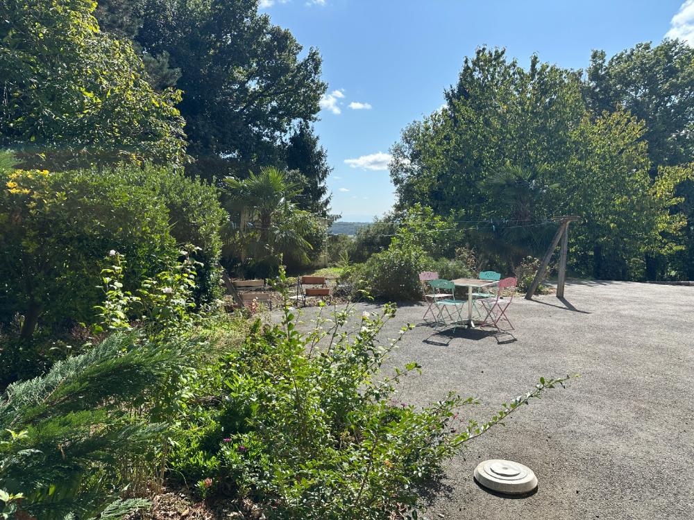 Grande terrasse carrelée, jardin (bornage en cours de validation).