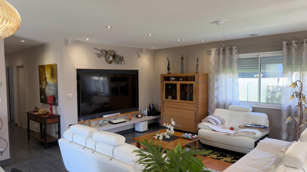 Les prestations sont complètes et de qualité : chauffage au sol et chaudière gaz à condensation, climatisations réversibles, VMC double flux, panneaux solaires en autoconsommation, menuiseries PVC et aluminium double vitrage, volets roulants électriques.