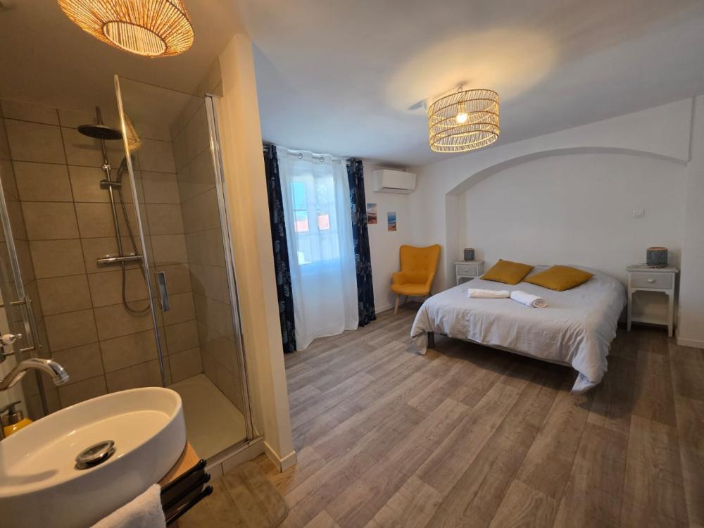 A l'extérieur, une dépendance avec une chambre et sa salle d’eau privative.