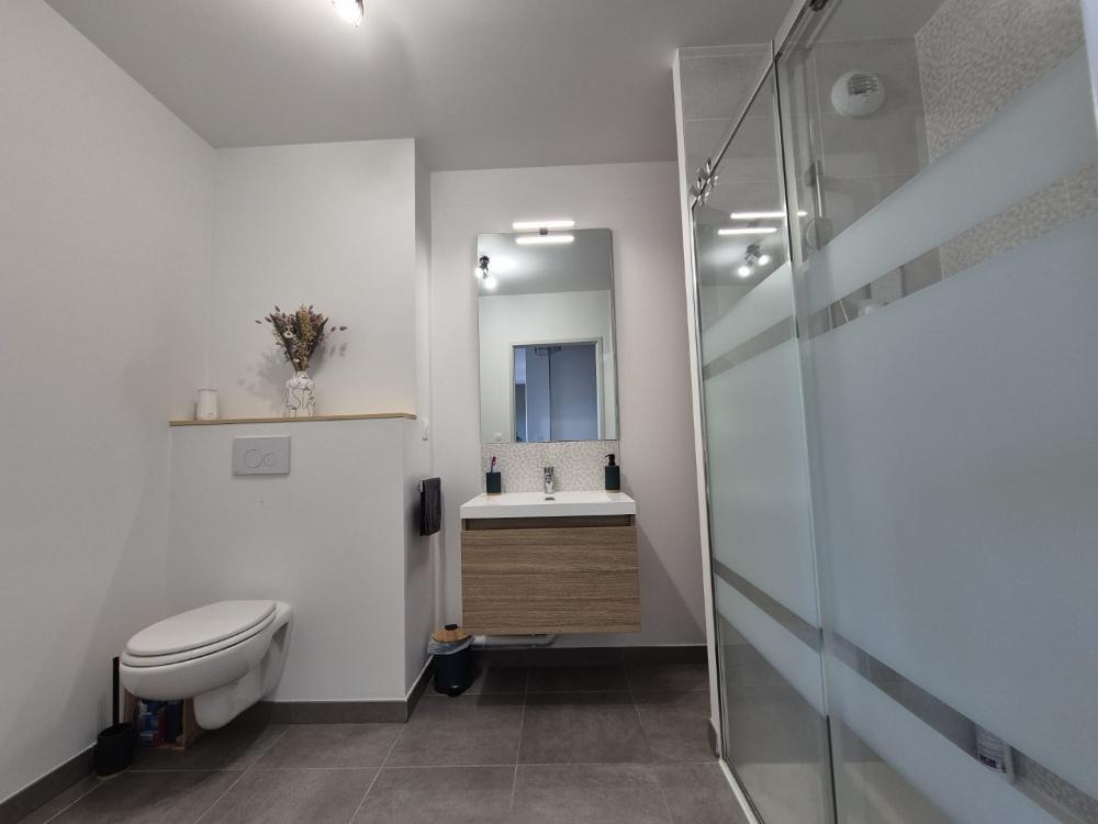 -Salle d'eau moderne avec douche à l'italienne, vasque et WC