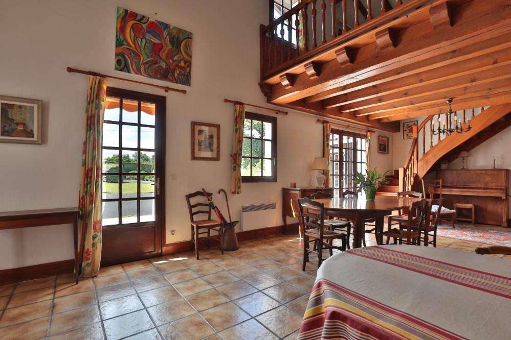 Située dans le village d’Ahetze, cette maison lumineuse vous séduira par son cadre de vie calme et authentique, à seulement 15 minutes de Bidart, Saint-Jean-de-Luz et Biarritz. Pensée pour le confort de tous, y compris des personnes à mobilité réduite, elle offre un rez-de-chaussée fonctionnel avec une suite parentale, une chambre avec salle d’eau et WC attenants, ainsi qu’un bureau. L’espace de vie généreux comprend une cuisine ouverte sur une salle à manger avec plafond cathédrale, un salon avec cheminée insert, le tout baigné de lumière naturelle.