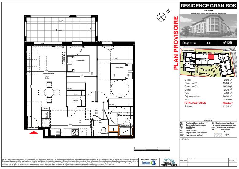Sur la commune d'Anglet, cet appartement de 64,77m2 se compose de 2chambre une cuisine ouverte sur salon/séjour, une terrasse et une place de parking.