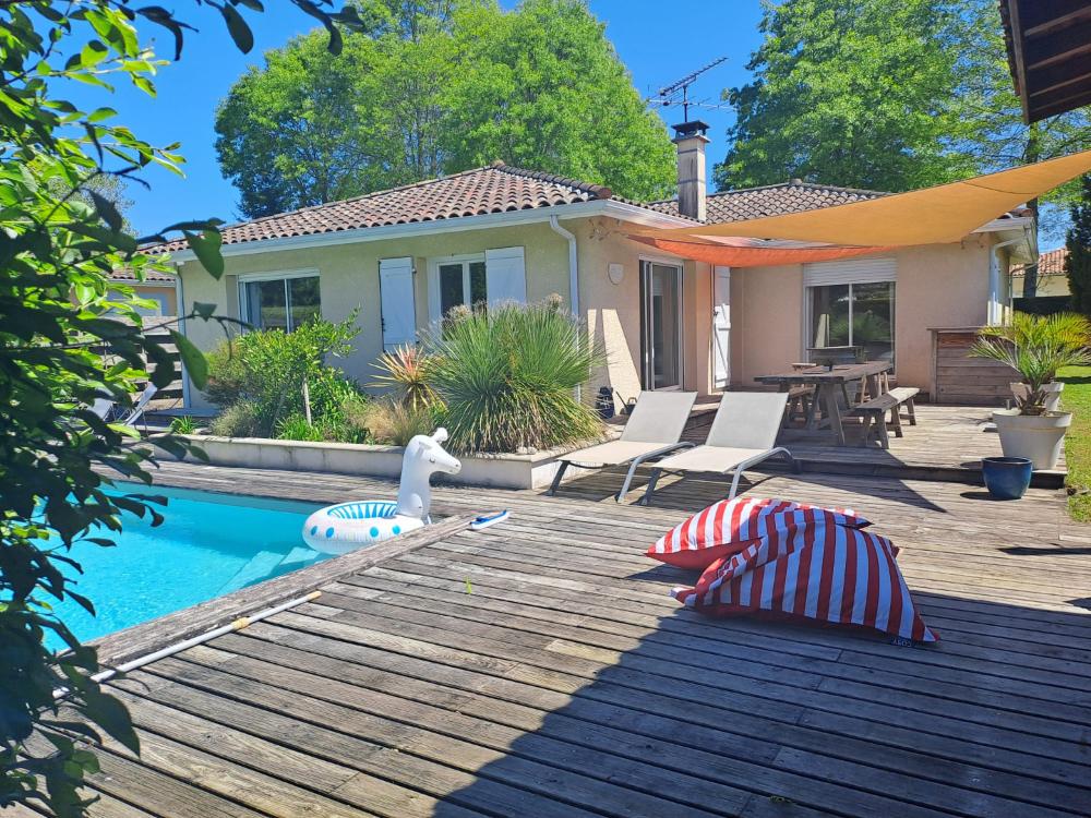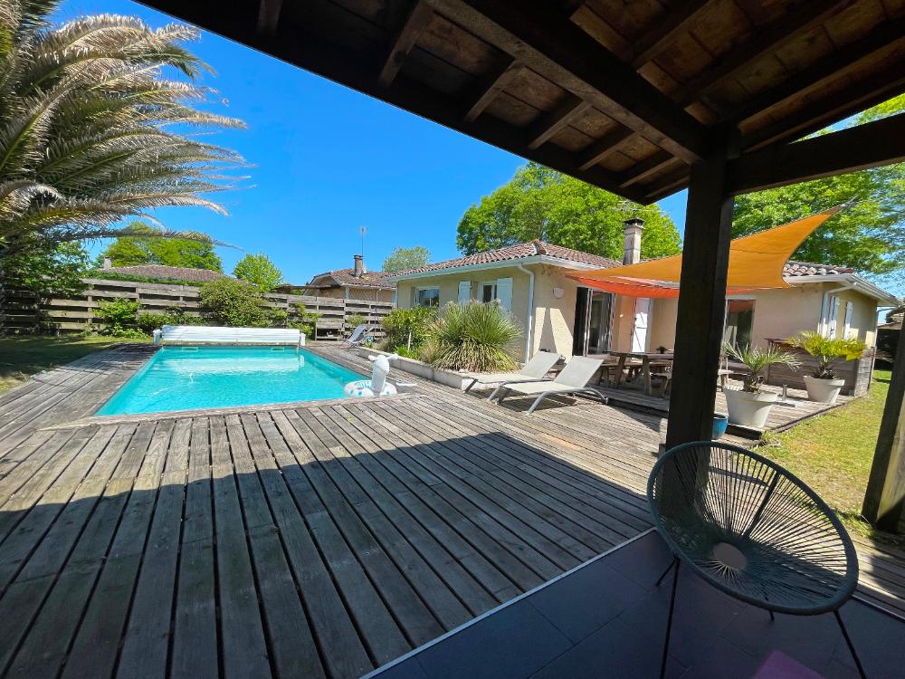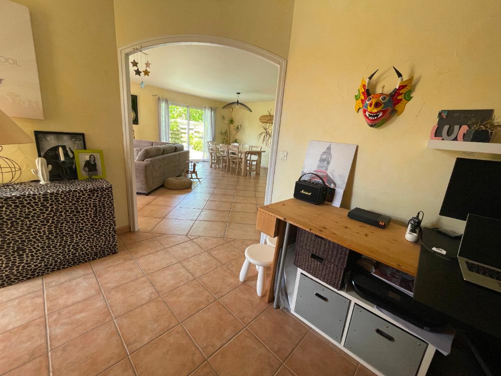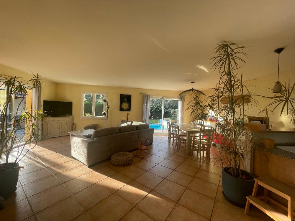De plain pied, cette maison de plus de 120 m² vous propose un espace de vie avec cuisine ouverte de plus de 47 m², lumineux et tourné vers le jardin. 3 chambres (dont une avec salle d'eau), 1 bureau, une salle de bains commune, 1 cellier et 1 garage complète le tout. Les extérieurs sont entretenus et agréables avec des espaces définis, une belle terrasse, une piscine et une autre terrasse couverte. Contactez nous pour la découvrir !