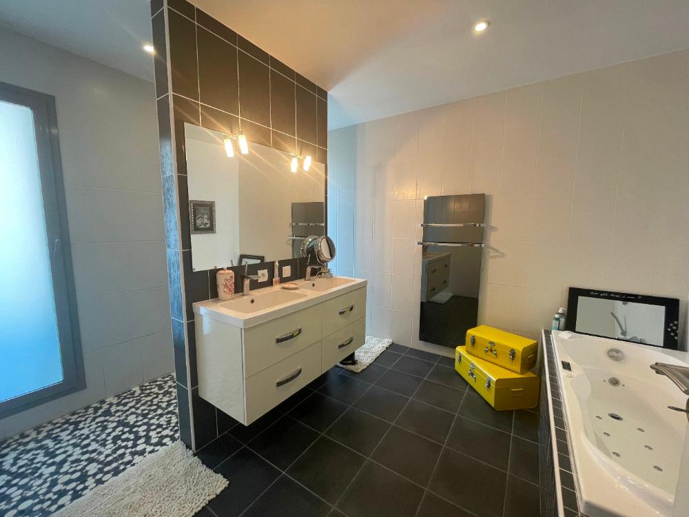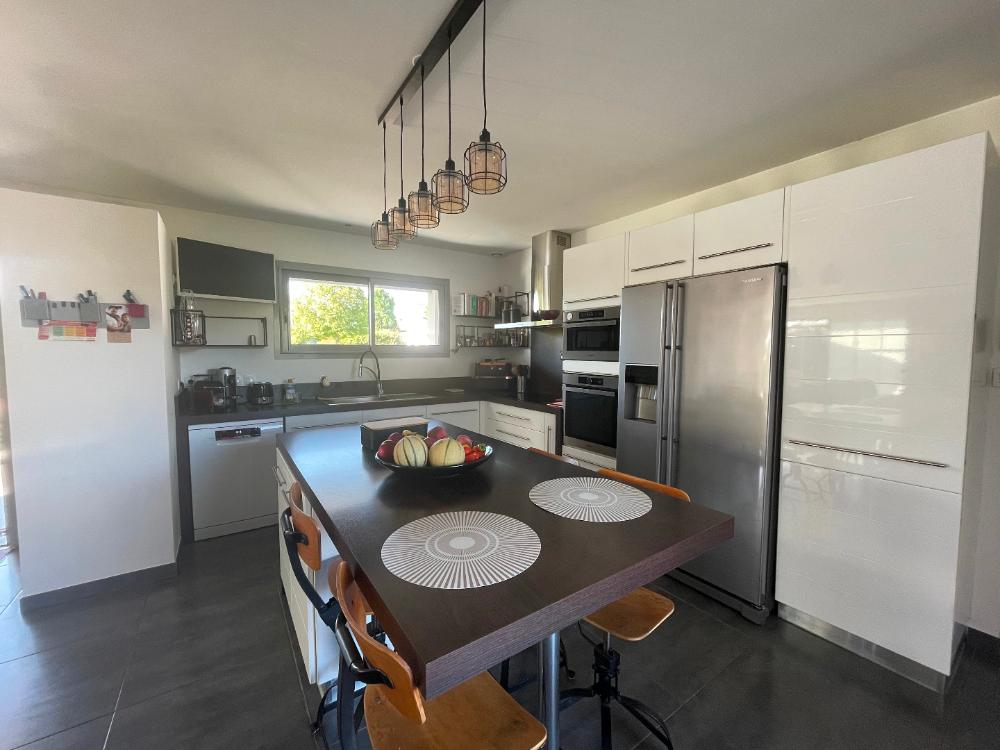 Cette maison ne peut que vous plaire puisqu'elle réunit pratiquement tous les critères qui sont généralement demandés. De plain pied, vous serez tout d'abord charmés par sa pièce de vie lumineuse de plus de 55 m². On y trouve une cuisine comme neuve entièrement équipée, qui dispose d'un cellier attenant. Le coin repas et le coin salon sont lumineux et spacieux. Vous n'aurez plus qu'à choisir sur quelle terrasse déjeuner, puisque la pièce de vie vous donne accès directement à 2 terrasses spacieuses et agréables. Le coin nuit se compose de 3 chambres spacieuses, dont une chambre parentale (dressing et salle d'eau). La salle de bains commune est elle aussi très spacieuse. Le bureau, qui peut faire office d'une quatrième chambre, est attenant au salon, intime sans être complètement fermé. Le jardin est agréable, avec plusieurs espaces distincts et une piscine.