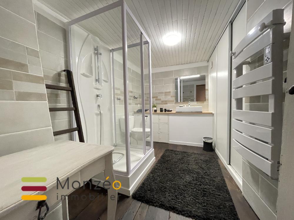 À l’étage, une suite parentale, une seconde chambre, un bureau et une salle de bain avec WC complètent l’ensemble.