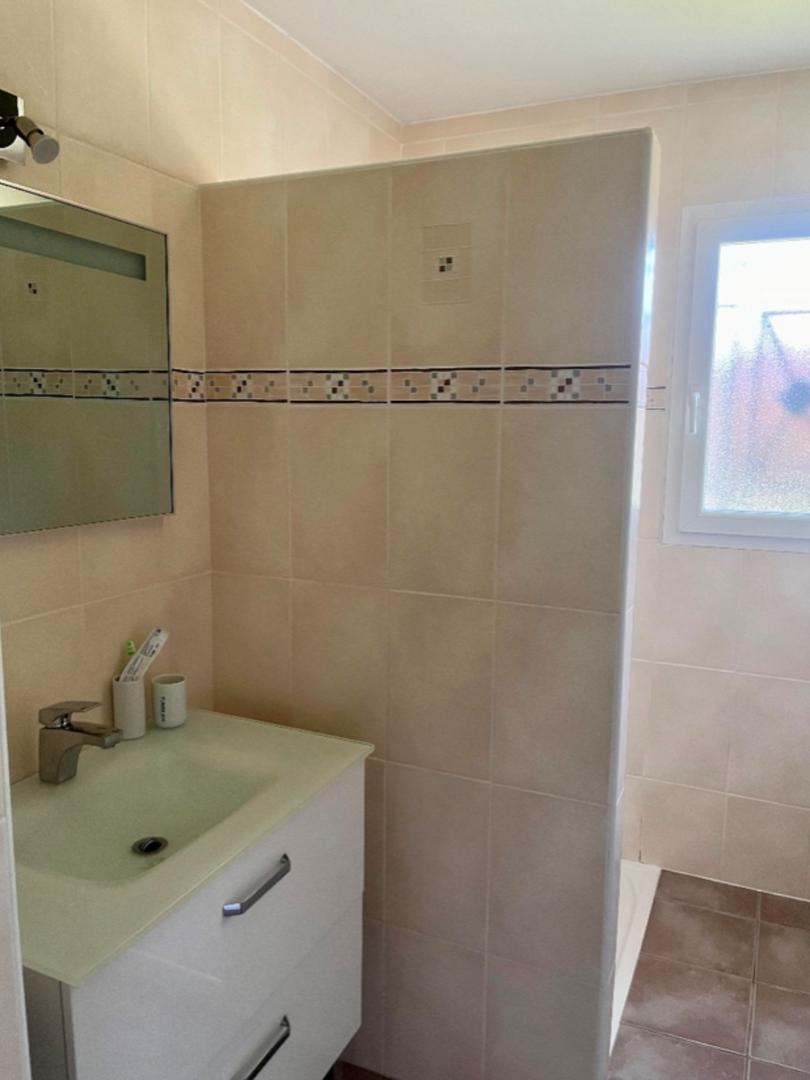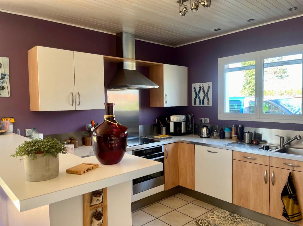 Elle comprend une grande pièce de vie ouverte sur cuisine aménagée et semi-équipée, un cellier attenant , 3 chambres, un bureau ( convient pour une chambre), une salle de bain ainsi qu'un WC.