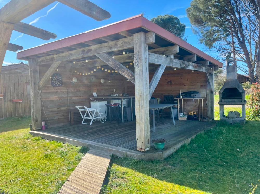 A l'extérieur vous disposerez d'une grande terrasse ainsi qu'une cuisine d'été abritée.