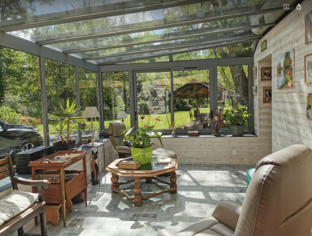 Coup de coeur pour cette belle propriété au bord d'une rivière, proche du Faouët, avec un très beau parc arboré et un champ de plus de 3 hectares (possibilités chevaux). Le bien est composé d'une maison principale en pierres sous ardoises, d'environ 155 m2 habitable, composée sur RDC d'une cuisine aménagée/salle à manger de 39 m2, d'un salon de 25m2, de 2 vérandas d'environ 15m2 chacune, d'une suite parentale de 27m2 comprenant un dressing, d'une sde avec douche à l'italienne et WC, d'une buanderie avec douche et WC et un cellier. A l'étage, 3 chambres et 1 sdb avec WC. Une petite dépendance mitoyenne en pierres sous ardoises, à rafraîchir d'environ 60 m2 avec séjour/cheminée de 30m2 au RDC et à l'étage, chambre avec point d'eau. A cela, il y a 4 petites dépendances en bois, sous tôles.