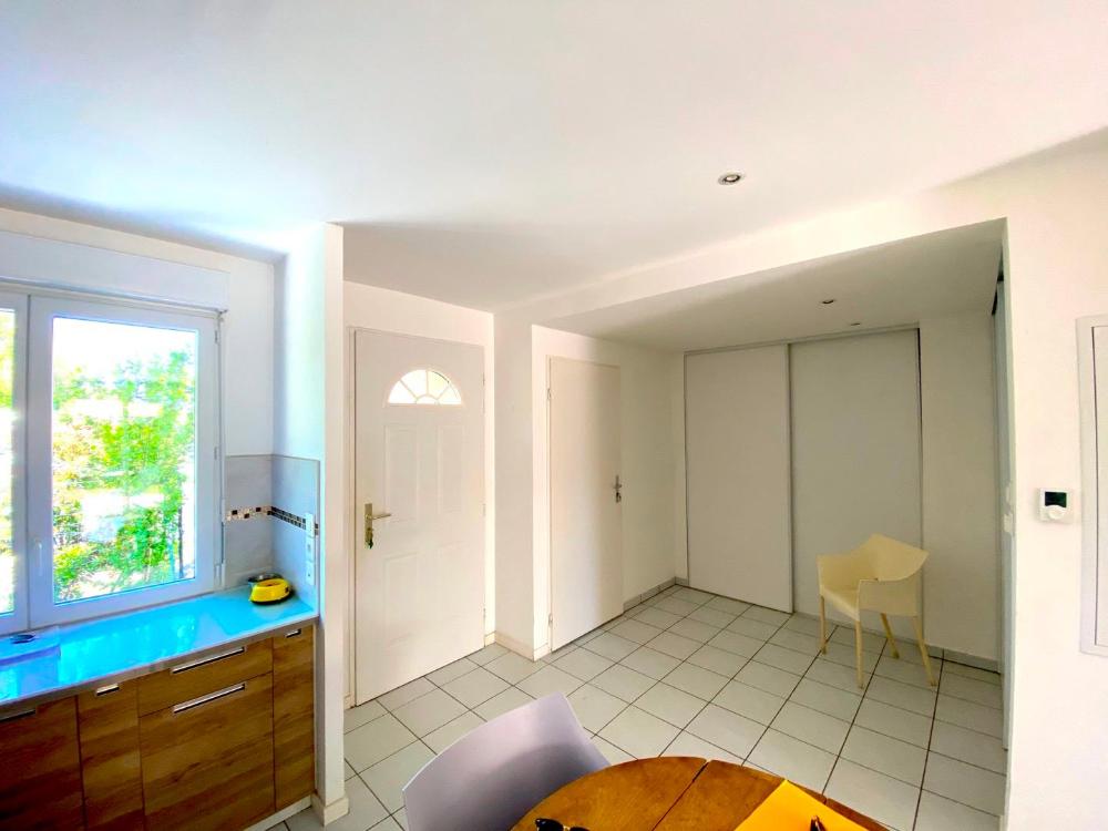 Maison mitoyenne d'un seul coté, d'environ 93m2, en excellent état, sur un jardin de 282m2. En RDC: une entrée avec 2 grands placards. Pièce de vie avec cuisine ouverte et aménagée. Un cellier, un wc / salle d'eau.