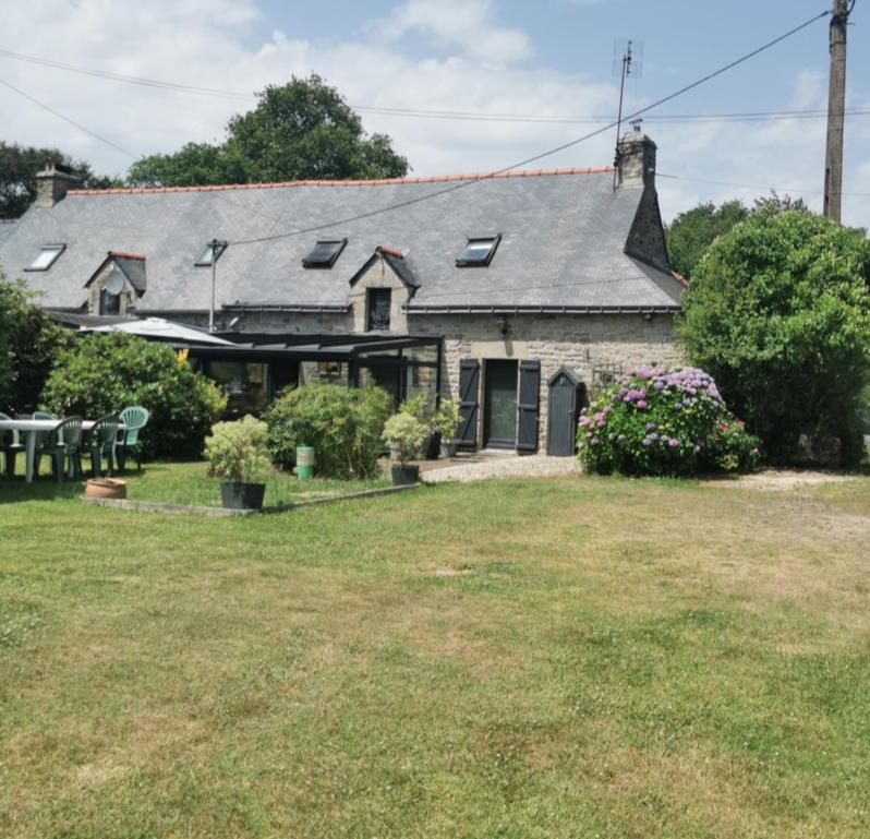 En campagne, jolie propriété de 2 maisons à 5 mn de Le Faouët et proche des axes principaux, composée d'une longère mitoyenne en pierres sous ardoises (entrée indépendante) d'environ 95 m2 habitables, avec au rdc une grande véranda de 20m2, un séjour-salon avec poêle à bois et cuisine A/E de 40m2, une salle d'eau avec wc, un petit bureau. A l'étage, 2 chambres. Une terrasse donne sur le jardin.