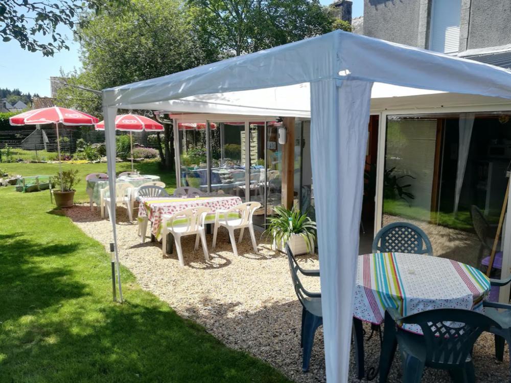 A proximité de l'étang du Bel-Air, grande maison en pierres sous ardoises au bourg de Priziac, servant actuellement de restaurant-pizzeria au rdc avec salle de restaurant, cuisine, arrière-cuisine, réserve, véranda et grande remise. Possibilité de réaménagement du restaurant en logement indépendant.