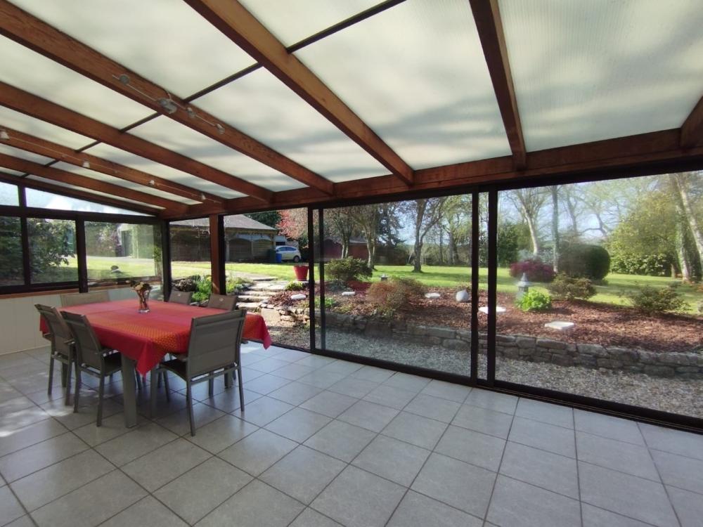 La maison a une grande véranda de 25 m2 donnant sur le parc, les baies sont coulissantes et ouvertes donnent l'impression d'être dehors pour profiter au maximum du beau jardin, une cuisine aménagée, équipée de 25 m2, un grand salon-séjour de plus de 60 m2 avec cheminée, une grande salle de bains avec douche et wc. Au 1er étage, une chambre, une salle de bains avec Wc, une grande mezzanine, au 2e étage , 2 chambres sous rempants. Double vitrage présent, chauffage électrique.