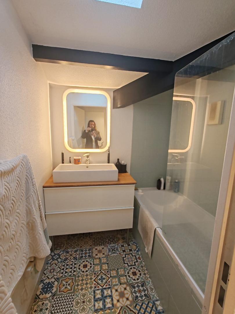 L'appartement dispose d'un grand balcon exposé Sud sans vis à vis, d'une cuisine moderne aménagée et équipée ouverte sur le séjour, d'une grande chambre avec rangements. Une buanderie, une place de parking, une climatisation réversible, et un ascenseur dans cette résidence très bien entretenue et sécurisée, en font un lieu de vie très agréable.