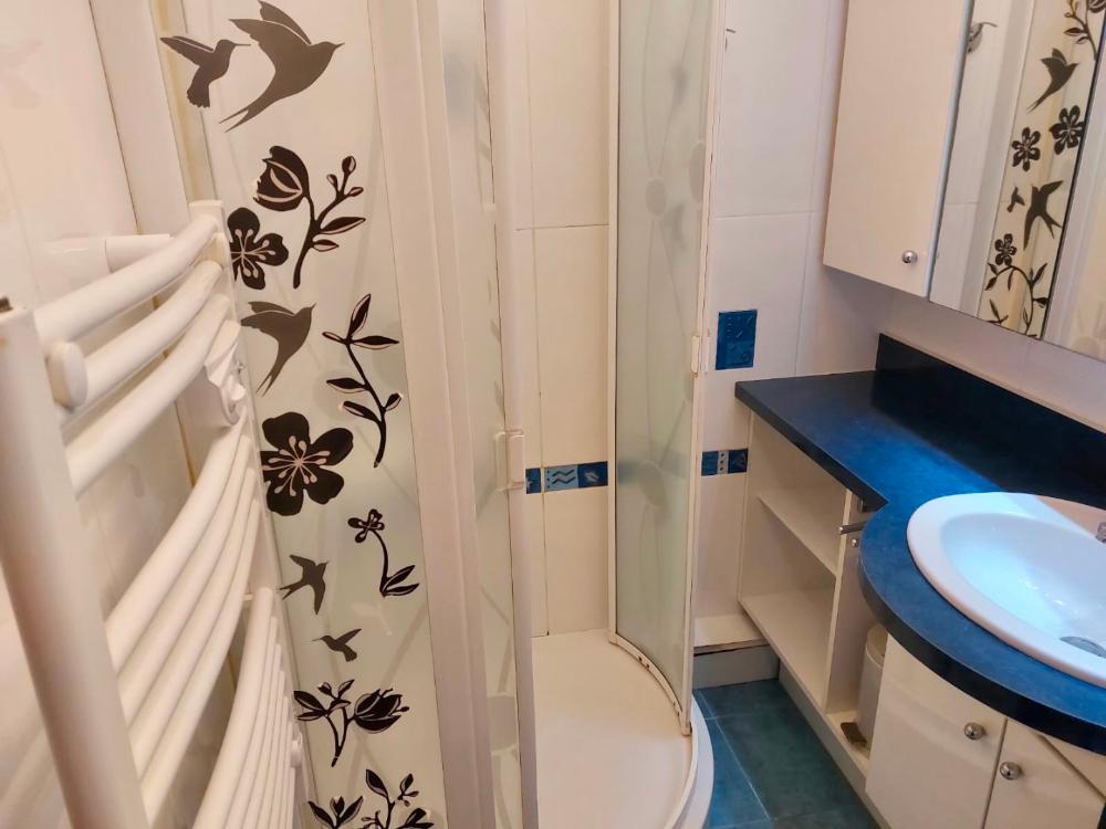 Il possède une place de parking privé, une entrée avec des lits superposés , une salle d'eau , un wc indépendant , une cuisine kitchenette et un séjour avec couchage ouvrant sur un balcon vue océan.
