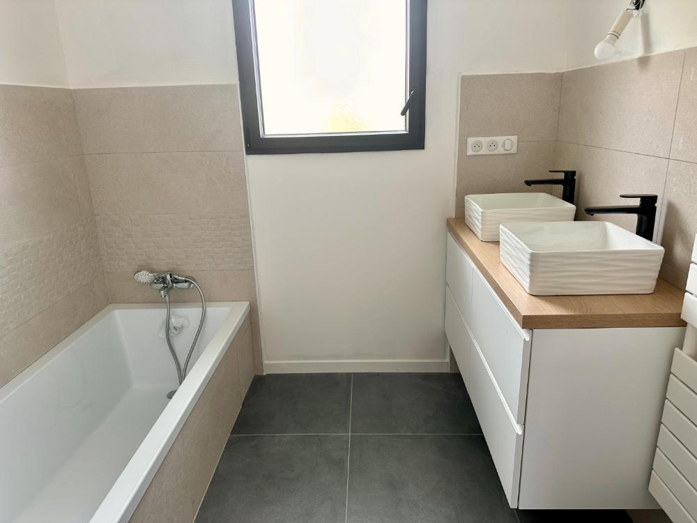 Une entrée, une belle et lumineuse pièce de vie de plus de 44m2 ouverte sur une cuisine aménagée et équipée, un cellier, 4 chambres dont une chambre parentale avec son espace dressing, un bureau, une salle d'eau (avec double vasque, douche à l'italienne), une salle de bain (douche et baignoire), 2 wc.